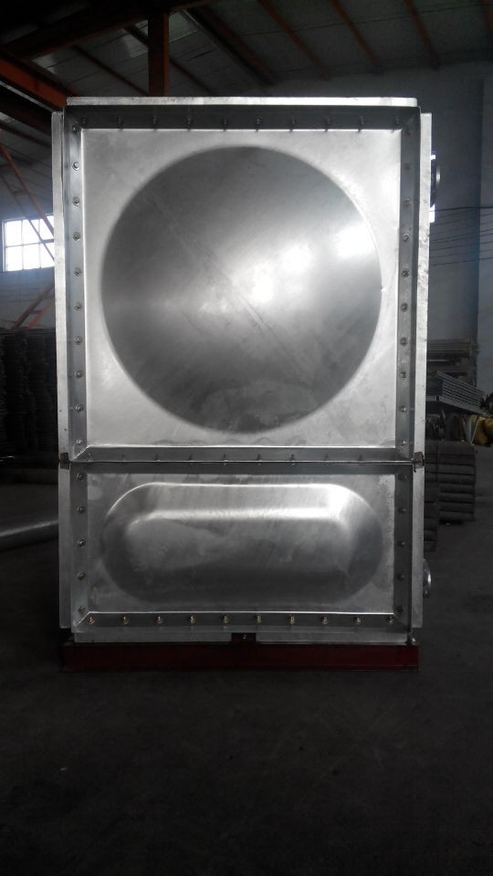 鍍鋅鋼板水箱是采用Q235鋼板,沖壓形成1000*000和1000*500 500*500的標(biāo)準(zhǔn)塊,周邊鉆孔,經(jīng)鍍鋅處理,現(xiàn)場進(jìn)行組裝,組裝時(shí)標(biāo)準(zhǔn)塊之間硅膠密封,螺栓連接。該水箱制造、安裝均不受土建施工影響,不用焊接設(shè)備,表面采用熱鋅防腐處理,美觀,以免水質(zhì)二次污染,并符合建筑產(chǎn)品標(biāo)準(zhǔn)化、系列化、工廠化要求。’